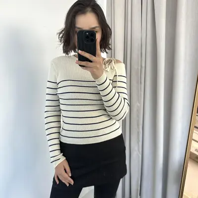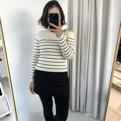 Өдөр тутамдаа, ажил хичээл сургууль дээрээ өмсөж болохуйц дэгжин сүлжмэл цамц. Нэг талын мөр, эгэм хэсгийг бага зэрэг ил гаргасан уяатай загвартай тул илүү дэгжин, эмэгтэйлэг харагдуулна. Маш сайн суналттай, өмсөхөд биед тухтай, зөөлөн материалтай.