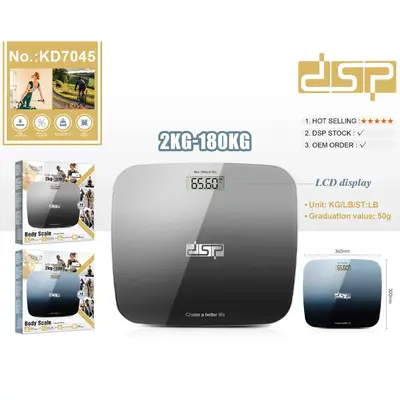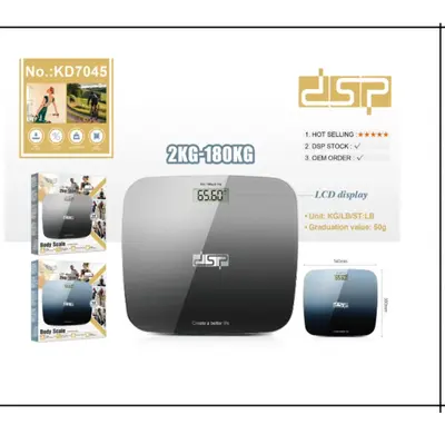 DSP брэндийн KD7045 загварын өндөр нарийвчлалтай хэмжилт болон загварлаг, минимал хийцийг хослуулсан электрон жин. Автоматаар асаж унтрах буюу дээр нь зогсох үед өөрөө асаж жингийн үзүүлэлтийг харуулна.