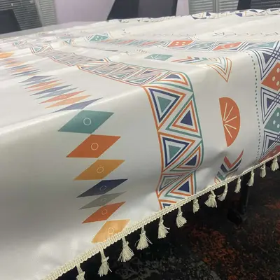 Ширээний бүтээлэг 120'170см хэмжээтэй, хулдаасан материалтай даавуун цацагтай, ус тос нэвтрэхгүй