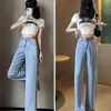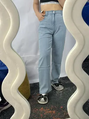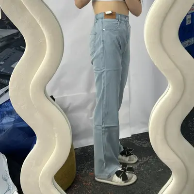 Эмэгтэй жинсэн өмд ардаа резинтэй, өргөн, цайвар цэнхэр