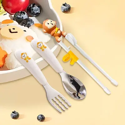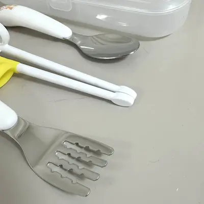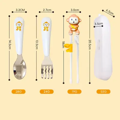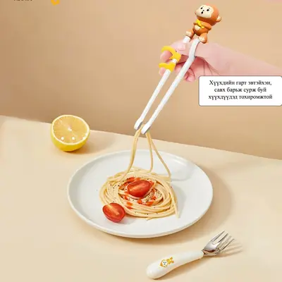 1-6 настнууд ашиглах боломжтой зориулалтын савтай халбага сэрээ савхны ком. 1-р ангид орох болон бага ангийн хүүхдэдээ хичээл сургуульд нь өгөөд явуулахад тохиромжтой хадгалах савтай тул цэвэрхэн. Савх ашиглаж сургах зориулалттай хуруугаа хийх зөөлөн резинэн оруулгатай. Хүүхэд барихад гарт нь эвтэйхэн бариултай. Өхөөрдөм сармагчингийн дүрс, зурагтай.