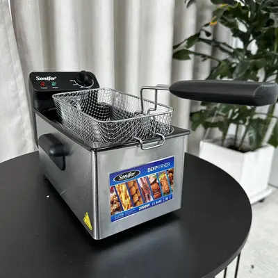 Sonifer брэндийн SF-1029 модель загварын төмс, хуушуур шарагч deep fryer. Богино хугацаанд хоолыг амтлаг шаржигнасан болгоход тусална. 130-190 градус хүртэл тохируулах боломжтой. Энгийн шарагчтай харьцуулахад тос бага хэрэглэнэ, хэмнэлттэй. Хуушуур, төмс, ногоо, тахиа болон боорцог ч шарах боломжтой. Гар түлэхгүй бариултай, тос үсрэхээр сэргийлсэн ган тагтай. Угааж цэвэрлэхэд хялбар.