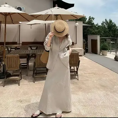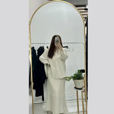 Ерөнхий мэдээлэл: Энэхүү хослол нь эмэгтэйлэг, цэмцгэр, классик хэв маягтай ба өдөр тутмын болон албан ёсны үйл ажиллагаанд тохиромжтой. Урт юбка нь эмэгтэйлэг, галбирыг улам тодотгодог. Харин сорочкан цамц нь албан ёсны, цэвэрхэн төрхийг бий болгож, олон төрлийн арга хэмжээнд өмсөх боломжтой. Ажил хэрэг, өдөр тутамд аль алинд тохиромжтой. Хослол болгон өмсөхөөс гадна тус тусдаа өөр хувцастай зохицуулж өмсөж болно.