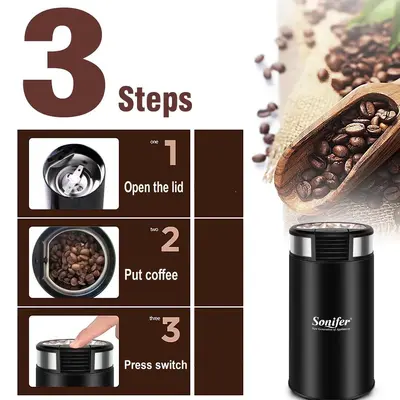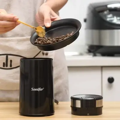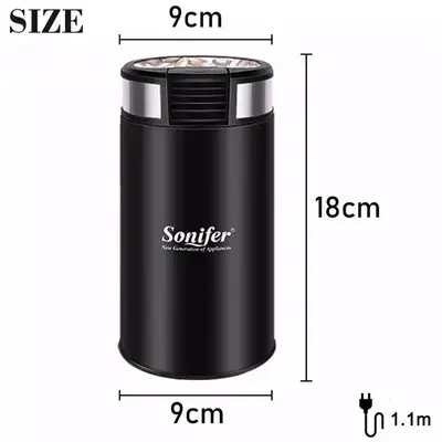 Sonifer брэндийн SF-3526 загварын кофе бутлагч нь гэрийн нөхцөлд кофены үр болон бусад амтлагчийг нунтаглахад тохиромжтой, зэвэрдэггүй ган иртэй тул кофены үрийг жигд, хурдан нунтаглана. Аюулгүйн түгжээ нь төхөөрөмжийг зөвхөн таг нь зөв байрлалд түгжигдсэн үед ажиллах боломжтой болгож, хэрэглэгчийн аюулгүй байдлыг хангана.