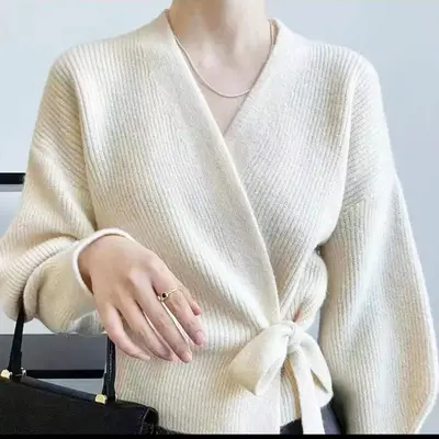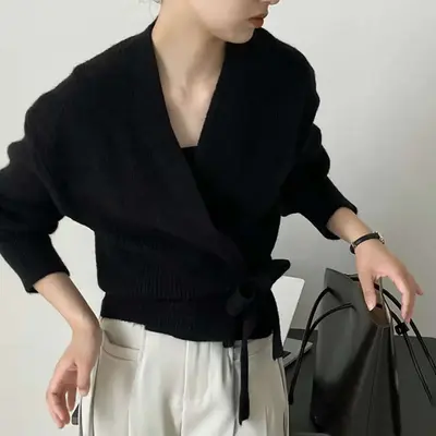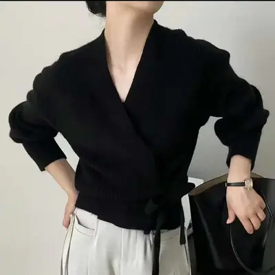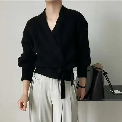 Ерөнхий мэдээлэл: Зөөлөн, уян хатан сүлжмэл даавуугаар хийгдсэн тул биед эвтэйхэн, дулаахан. Задгай энгэртэй тул цамц, топон дээр давхарлаж өмсөхөд тохиромжтой. Өөрийн өнгөтэй ижил бүстэй бөгөөд бэлхүүсийг тодотгон, эмэгтэйлэг хэв маяг нэмнэ. Классик хар болон цагаан өнгө нь өдөр тутам болон албан ёсны хувцаслалттай хослуулахад хялбар. Сэрүүний улиралд өмсөхөд тохиромжтой.
