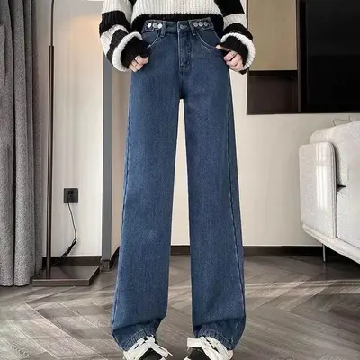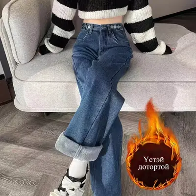 Эмэгтэй өргөн загварын зөөлөн үслэг дотортой жинсэн өмд. Маш зөөлөн материалтай тул өмсөхөд биед эвтэйхэн, дээд зэргийн тухтай. Өндөр суудалтай хөдөлгөөнд саад болохгүй. Дангаар нь болон нимгэн дотуур өмдний гадуур өмссөн ч болохуйц бага зэргийн зөөлөн үстэй дотортой. Ямар ч гутал хувцастай зохицох загварлаг.