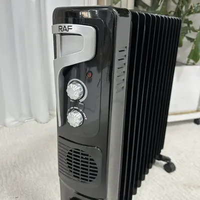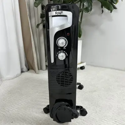 RAF брэндийн R1329B загварын тосон халаагуур, тень. 4 дугуйтай, халахгүй зөөвөрлөхөд хялбар бариултай. Залгуураа эвхэж хураах хэсэгтэй.