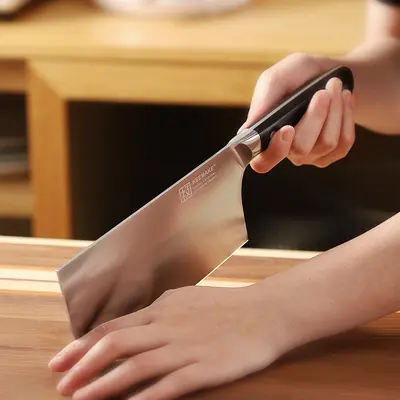 Махны заазуур модон иштэй 7 inch: Германы өндөр нүүрстөрөгчийн гангаар хийгдсэн KEEMAKE хүнд даацын заазуур нь мах, яс, ногоо, жимсийг амархан, цэвэрхэн, хүч гаргалгүй хэрчихэд зориулагдсан.