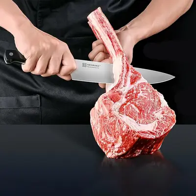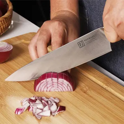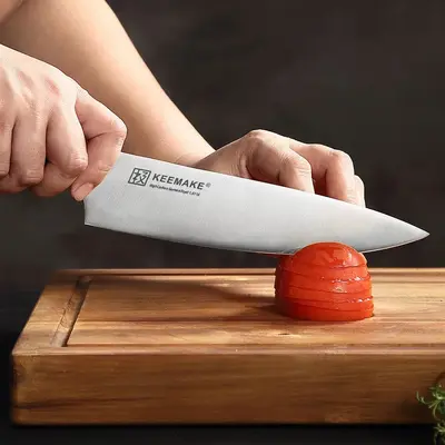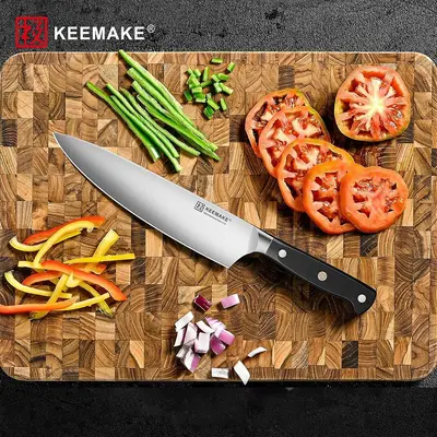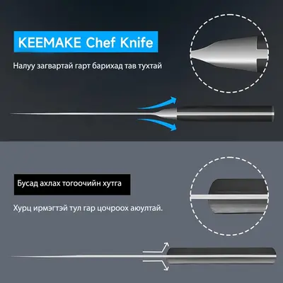 Ахлах тогоочийн хутга модон иштэй 8 инч: KEEMAKE брэндийн ахлах тогоочийн хутга нь Германы өндөр нүүрстөрөгчийн гангаар хийгдсэн бөгөөд хурц, бат бөх, тэнцвэртэй хийцтэй.
