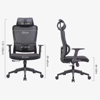 Хэмжээ: Өндөр 113-123см, өргөн 67.5см. Суудлын өргөн - 51см, урт - 51.5см. Газраас суудал хүртэлх өндөр 44-54см. Газраас гарын түшлэг хүртэл 59-69см.