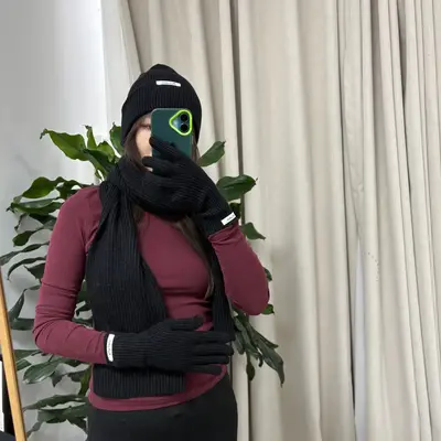 Хүйтэнд салхи нэвтрүүлэхгүй, дулаахан байлгах малгай ороолт бээлийний багц. Маш зөөлхөн, хөнгөн, тав тухтай материалтай. Ямар ч хувцаслалттай зохицох энгийн загвартай. Зузаан сүлжмэл материалтай.