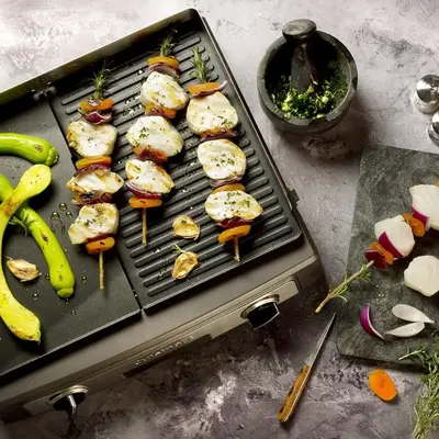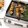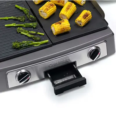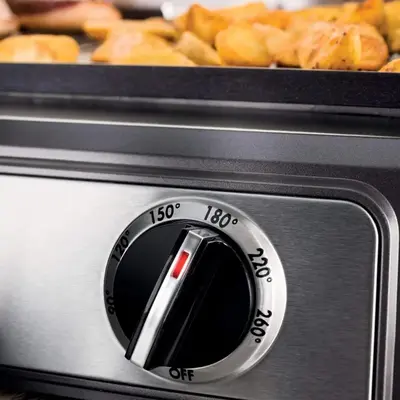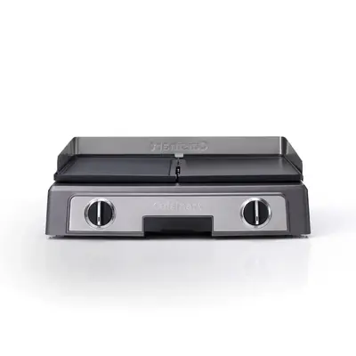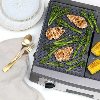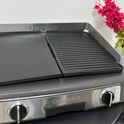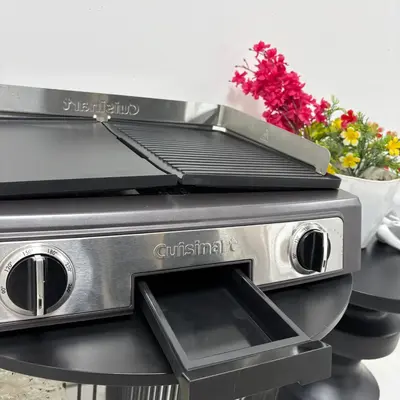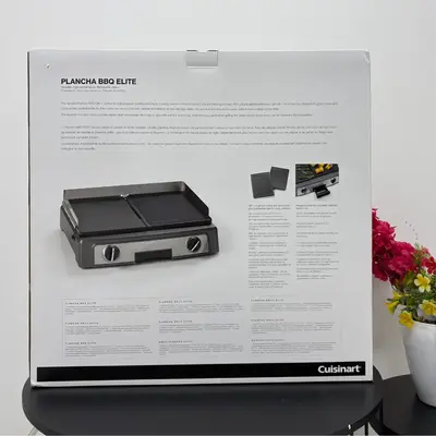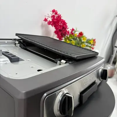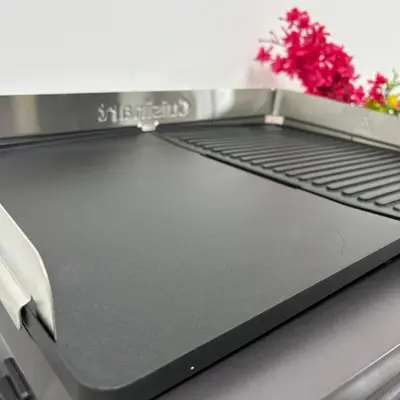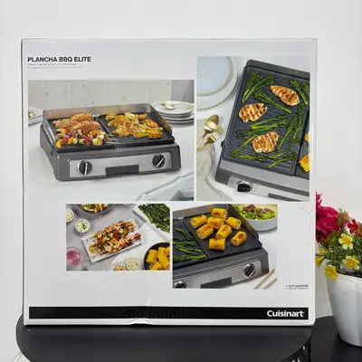 Cuisinart брэндийн Plancha BBQ Elite - PL50E загварын цахилгаан грилл нь гэрийн нөхцөлд олон төрлийн хоол хийхэд тохиромжтой, олон үйлдэлт грилл юм. Мах, загас, хүнсний ногоо зэрэг олон төрлийн бүтээгдэхүүнийг шарах, жигнэхэд тохиромжтой. Наалддаггүй тавцан нь хоолыг түлэгдэхээс сэргийлдэг, цэвэрлэхэд хялбархан. Тусдаа температурын тохируулагчаар нь хоёр тавцанг өөр өөр температурт тохируулан ашиглах боломжтой. Өөр дээрээ тосны савтай бөгөөд аваад цэвэрлэхэд маш хялбархан шарагч. BBQ - 2 тусдаа мах шарах ширмэн тавцан нь барбекюны хамгийн тохиромжтой хувилбар юм. Хурдан халдаг тул богино хугацаанд, их хэмжээний хоол хийх боломжтой.