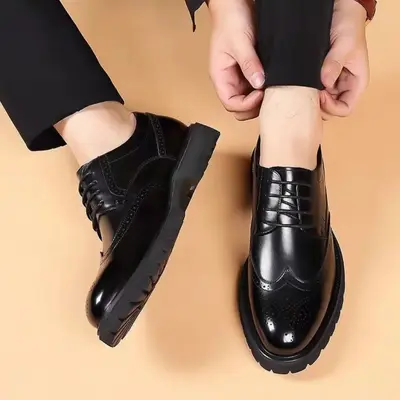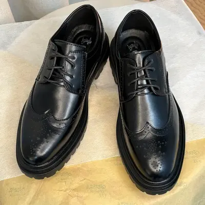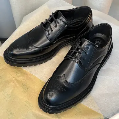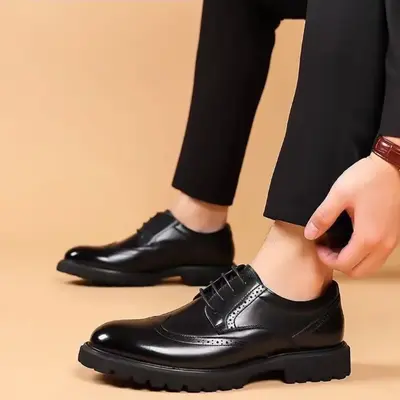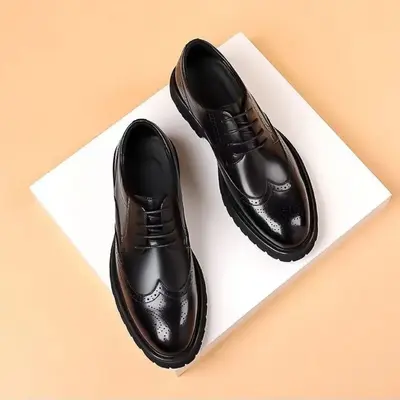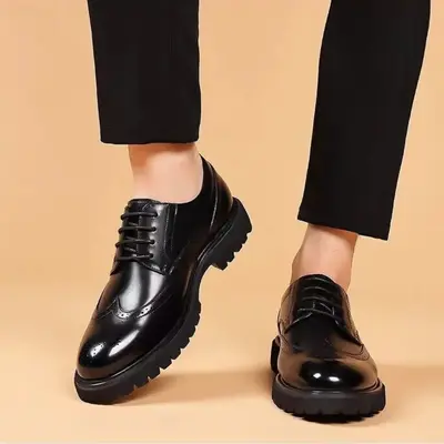 Бизнес болон албан ёсны уулзалт,өдөр тутамдаа, тэмдэглэлт баяраар өмсөх боломжтой Brogue загварын эрэгтэй гутал. (1–3 см) Зузаантай өсгий. Бүх насны залуус өмсөхөд тохиромжтой. Энгийн цэвэрхэн хийц загвартай.