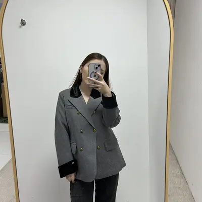 Ерөнхий мэдээлэл Зах болон ханцуй хэсэгтээ хар өнгийн оруулгатай, том алтлаг товчтой, 2 том халаастай. Оффис, хурал, уулзалт гэх мэт албан ёсны үйл ажиллагаанд өмсөхөд тохиромжтой. Бүх төрлийн сорочик, хоолойтой цамц, топтой зохицуулж өмсөж болно. Бөөсрөхгүй, биед наалдахгүй, сул, маш гоё материалтай.