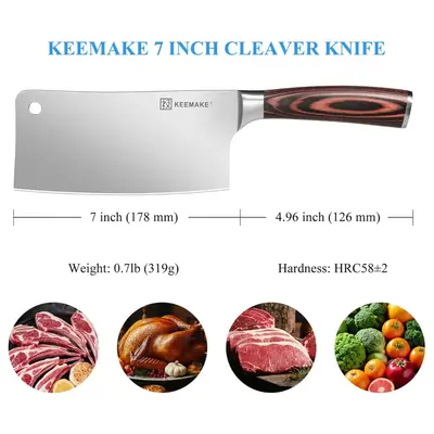 7 инч Тогоочийн заазуур модон иштэй: KEEMAKE брэндийн ахлах тогоочийн хутга нь Германы өндөр нүүрстөрөгчийн гангаар хийгдсэн бөгөөд хурц, бат бөх, тэнцвэртэй хийцтэй.