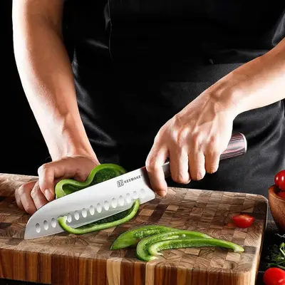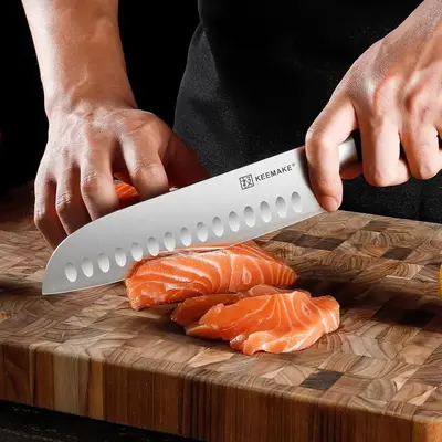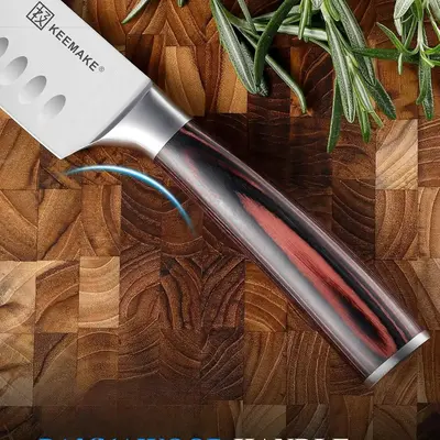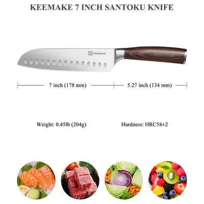 7 инч Тогоочийн хутга модон иштэй: KEEMAKE брэндийн ахлах тогоочийн хутга нь Германы өндөр нүүрстөрөгчийн гангаар хийгдсэн бөгөөд хурц, бат бөх, тэнцвэртэй хийцтэй.