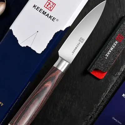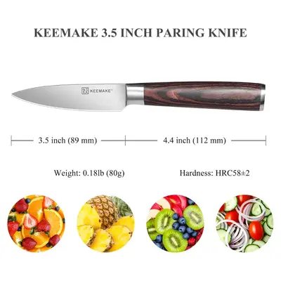 3.5 инчийн жимсний хутга модон иштэй: KEEMAKE брэндийн ахлах тогоочийн хутга нь Германы өндөр нүүрстөрөгчийн гангаар хийгдсэн бөгөөд хурц, бат бөх, тэнцвэртэй хийцтэй.