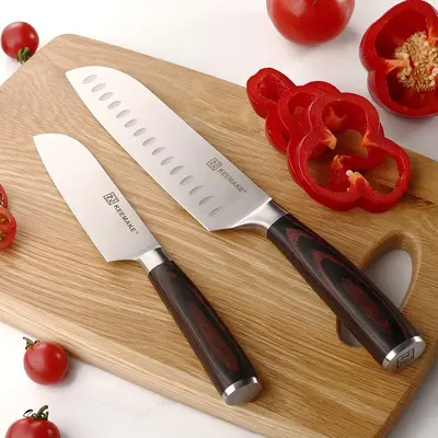 3хос хутганы иж бүрдэл модон иштэй: KEEMAKE-ийн премиум хутганы сет нь мэргэжлийн түвшний хурц ир, бат бөх ган, тансаг модон бариултай.Германы 1.4116 өндөр нүүрстөрөгчтэй гангаар хийгдсэн тул өдөр бүрийн хэрэглээнд төгс нийцнэ.