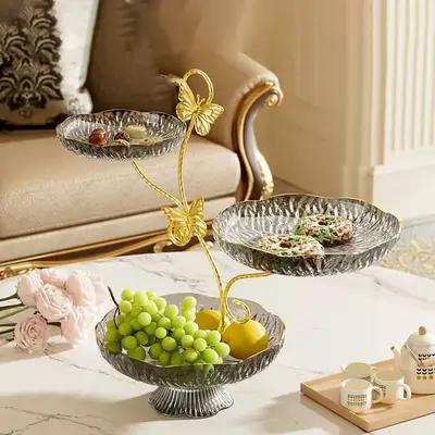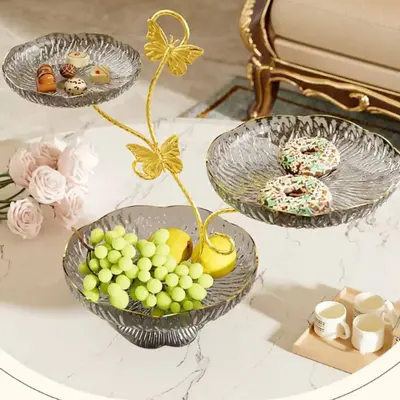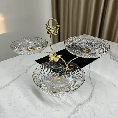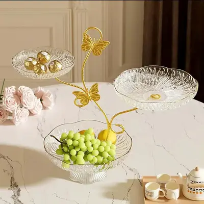 Гоёмсог загвартай, орчныг үзэмжтэй харагдуулах 3 давхар таваг. Алтлаг өнгийн эрвээхэй чимэглэлтэй тул зочин хүлээн авах, ширээ засах, амтат жимс, амттан өрөхөд тохиромжтой. 3 давхар тул зай бага эзлэхээс гадна багтаамж сайтай.
