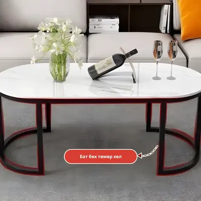 Гэрийг эмх цэгцтэй харагдуулах минимал загварын төмөр хөлтэй, чулуун тавцантай буйдангийн ширээ. Оффис, Зочны өрөө, үйлчилгээний газар гээд хаана ч ашиглах боломжтой. Өндөр хатуулагтай, цохилтод тэсвэртэй, зураас элэгдэл үсэхгүй сайн чанарын ширээ.