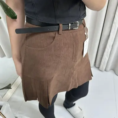 Өдөр тутамдаа болон оффис, хичээл сургуульдаа өмсөхөд тохиромжтой хуниастай богино загварын тэлээтэй юбка. Суналтттай, биед эвтэйхэн, хөдөлгөөнд саад болохгүй тухтай материалтай. Дотор талдаа нимгэн даавуун шорттой. 2 талдаа багтаамжтай халаастай. Ямар ч биеийн хэлбэрт тохирсон загвартай.