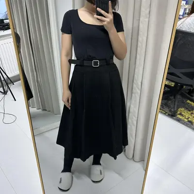 Өдөр тутамдаа болон оффис, хичээл сургууль гээд хэзээ ч хаана ч өмсөхөд тохиромжтой сул загварын тэлээтэй юбка. Дээд хэсгээрээ гэдэс дарж өгөх загвартай тул өөг дарж галбирлаг харагдуулна. Хуниастай, сул загварын хормойтой тул өсгийтэй гутал, пүүз гээд ямар ч гуталтай хослуулан өмсөх боломжтой.