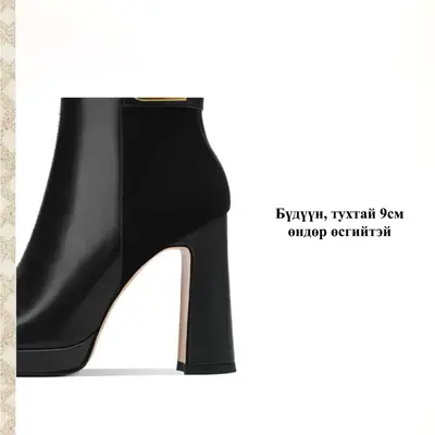 • Бүх төрлийн хувцастай зохицуулан өмсөхөд тохиромжтой өсгийтэй урт түрийтэй гутал.