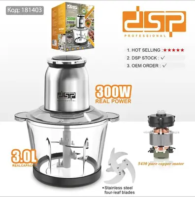 Гэр ахуйн хэрэглээнд зориулсан хүчтэй мотор, бат бөх шилэн сав, өндөр чанарын ган хутгатай олон үйлдэлт цахилгаан хэрчигч, миксер. Бүх төрлийн мах, ногоо, самрыг хүртэл хурдан, жигд, аюулгүй бутална. 4 иртэй тул, доороос дээш жигд эргүүлж нэг талд бөөгнөрүүлэхгүй, жигд хэрчинэ. 420 ган хутга нь хурц ирээ удаан хадгална. Мах, хатуу ногоо, самрыг төвөггүй бутална. Зэврэхгүй, аюулгүй материалтай.