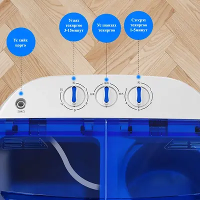 Хүүхдийн хувцас угаах болон ам бүл цөөн айлд хэрэглэхэд тохиромжтой жижиг угаалгын машин. Угаах болон сэгсрэх 2 тусдаа хэсэгтэй.