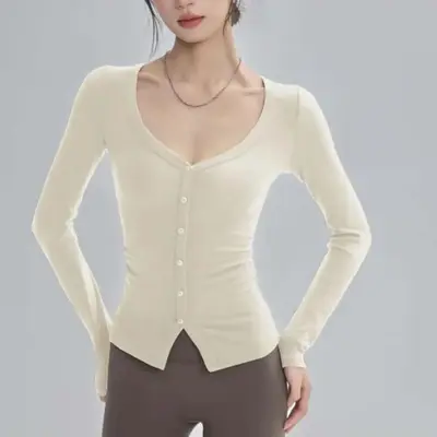 Маш гоё, суналттай хөвөн даавуун материалтай нимгэн цамц. Өдөр тутамдаа, оффист гээд ямар ч үед, бүх төрлийн өмд юбкатай зохицуулж өмсөж болно. V энгэртэй, товчтой, биеийн галбирыг тодотгосон бариун загвартай. Дангаар нь болон пиджак, кардиганы дотуур өмсөхөд тохиромжтой.