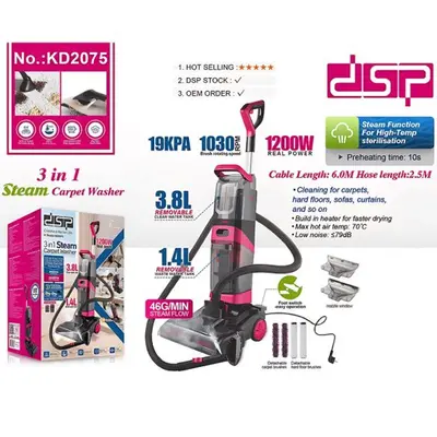 Гэр, оффис, үйлчилгээний газарт мэргэжлийн түвшний гүн цэвэрлэгээ хийх зориулалттай DSP KD2075 нь уураар ариутгах + сорох + угаах 3 үйлдлийг нэг дор гүйцэтгэх өндөр хүчин чадалтай ухаалаг төхөөрөмж юм.
