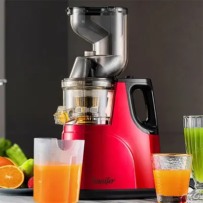 Sonifer брэндийн SF-5537S загварын автомат шүүс шахагч. Бүх төрлийн ногоо болон шүүсийг шахаж хэрэглэх боломжтой. Нэг талдаа хуурай үлдэгдлийг ялгах хэсэг, нөгөө талдаа цэвэр шүүсээ шахаж гаргах 2 хэсэгтэй. Дээд хэсэгтээ жимс, ногоогоо дарах зориулалтын шахагчтай тул хэрэглэхэд хялбар. шүүсийг хальснаас маш сайн ялгана, ус нэмэх шаардлагагүй, Илүү өтгөн, цэвэр жүүс гарна.