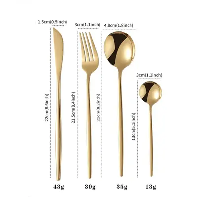 Хэмжээ: тус бүрийн хэмжээг зурган дээрээс харна уу \Том халбага-6 ширхэг, Жижиг халбага-6 ширхэг, Сэрээ-6 ширхэг, Маслоны хутга-6 ширхэг\
