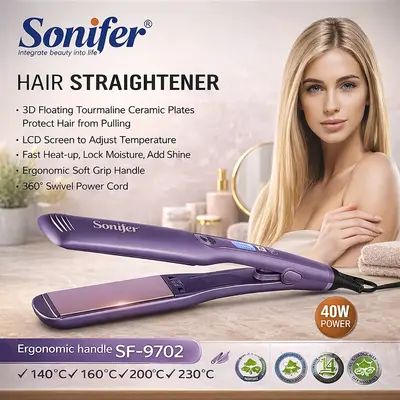 Sonifer брэндийн sf-9702 загварын үсийг гэмтээхгүйгээр хурдан, жигд халж, шулуун, буржгар долгионтой болгох үсний индүү. Гэртээ өдөр тутамдаа болон салоны нөхцөлд ашиглах боломжтой.