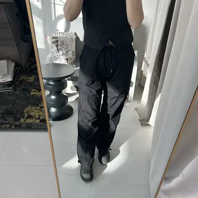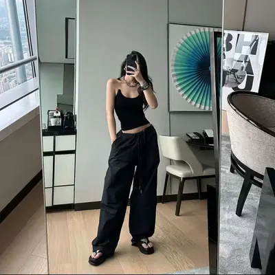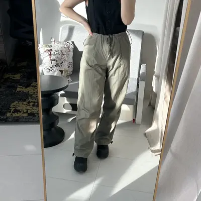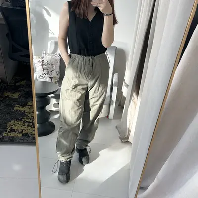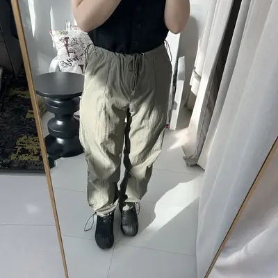 Өмсөхөд эвтэйхэн, сайн материалтай. Өргөн сул загвартай, хөдөлгөөнд саад болохгүй, биед эвтэйхэн өмсгөлтэй. Бүс болон шагайн хэсгийг уяагаар чангалж тохируулах боломжтой. Crop top, hoodie, oversize цамц, sneaker-тэй төгс зохицно.