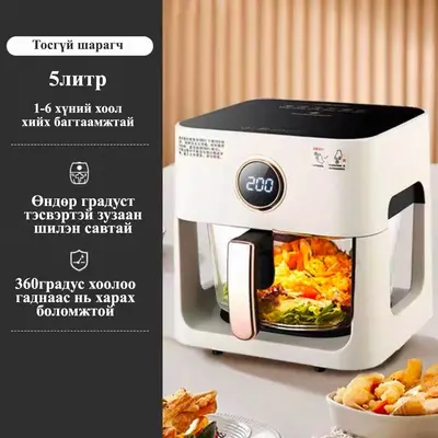 Минималист хайтек загварын Мэдрэгчтэй тосгүй шарагч. Тахиа, бүх төрлийн мах, төмс ногоо, пицца, кэйк гээд бүх төрлийн хоол амттанг эрүүл аргаар амттай агаараар шарж болгоно. Хугацаа болон градус тааруулах тохиргоотой тул хэрэглэхэд хялбар.