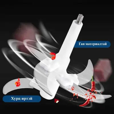 Ерөнхий мэдээлэл: Ажил хөнгөвчилж цаг хэмнэх мах, ногоо хэрчигч миксер. Ердөө 6-хан секундын дотор мах, ногоо, сонгино сармисыг жижиглэн бутална. Хэрэглэхэд хялбар, ажиллагаа энгийн. Эрүүл мэндэд сөрөг нөлөөгүй 304 ган материалтай. 4ш сайн чанарын хурц иртэй. Салгаад угааж цэвэрлэхэд хялбар. Шууд тогонд залган ажиллуулна.