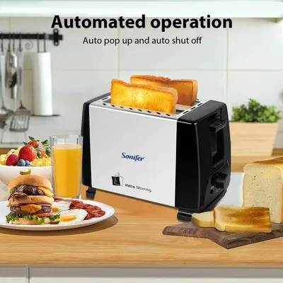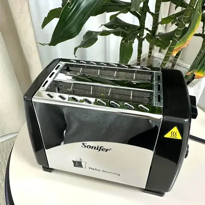 Sonifer брэндийн SF-6007 загварын автомат талх шарагч. Өглөө хүүхдээ сургууль, цэцэрлэгт хүргэж өгөх болон ажилдаа гарахын өмнө маш богино. хугацаанд өглөөний цайгаа бэлдэх ухаалаг сонголт. Нэгэн зэрэг хоёр зүсмэл талх шарах боломжтой. Шарагдсаны дараа талх өөрөө дээш үсэрч гарна, мөн өөрөө унтардаг тул аюулгүй.