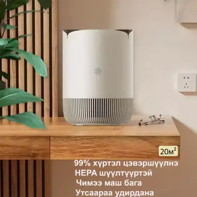 Онцлог: 99% хүртэл тоос, утаа, тоосонцор, харшил үүсгэгчийг шүүж цэвэрлэх HEPA шүүлтүүртэй. Тамхины утаа болон эвгүй үнэрийг хурдан шингээх идэвхжүүлсэн нүүрстөрөгчийн давхаргатай. Ажиллаж байхдаа дуу чимээ бага учир унтлагын өрөө болон оффисд тохиромжтой. Tuya Smart аппаар дамжуулан гар утаснаасаа холын зайнаас асаах, унтраах, горим тохируулах боломжтой. Олон шатлалт шүүлтүүрийн системтэй. Ширээ, оффис, жижиг өрөө, унтлагын өрөөнд тохиромжтой авсаархан жижиг хэмжээтэй. Нэг цагийн дотор 180 куб метр агаараас нарийн ширхэгт тоосонцрыг шүүж цэвэрлэх чадвартай.