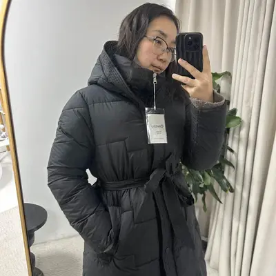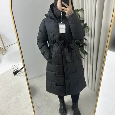 Өвлийн дулаахан урт загварын бүстэй куртик. Өмсөхөд тухтай, урт загвартай тул хөл дааруулахгүй маш дулаахан. Босоо захтай тул салхи сийгэхгүй, том хэмжээтэй малгайтай. Сайн чанарын цахилгаанаас гадна давхар кнопон хаалттай тул дээд зэргээр дулаан байдлыг хангасан. Хэдэн ч насны охид, эмэгтэйчүүд өмсөхөд тохиромжтой энгийн бөгөөд загварлаг.