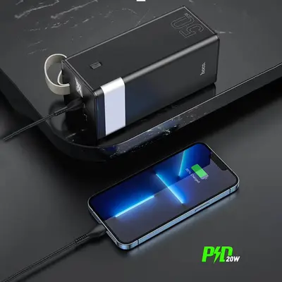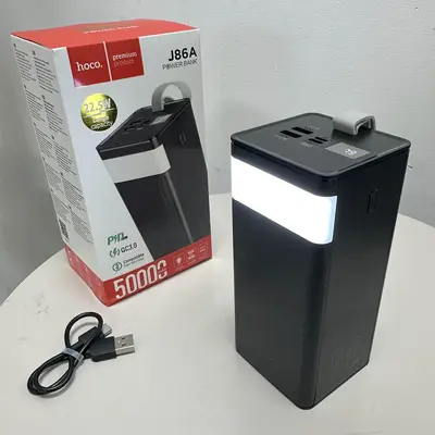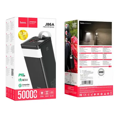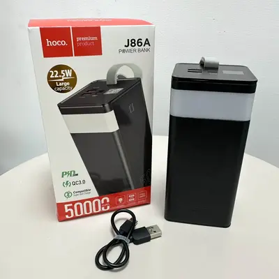 Зөөврийн цэнэглэгч, 50000mAh, Powerbank - Гар чийдэнтэй, HOCO, J86A Powermaster, 3 төрлийн порттой, Хэт хурдан буюу 22.5 Вт-аар цэнэглэнэ, LED дижитал дэлгэцтэй