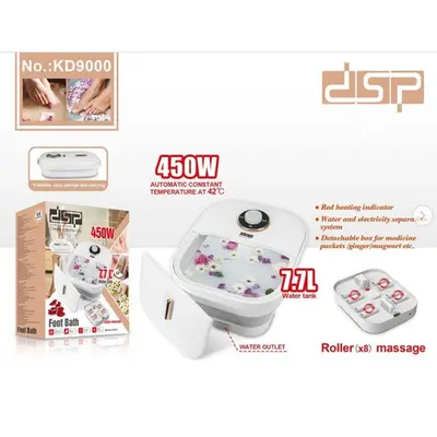 DSP брэндийн KD9001 загварын хөлийн ул, шагай, өсгий хэсгийг усанд дүрж халаах, массажны роллероор иллэг хийх хосолсон гэрийн нөхцөлд хэрэглэх хөлний спа аппарат. Ядарсан хөлийг тайвшруулж, цусны эргэлтийг идэвхжүүлж, биеийг бүхэлд нь амраах үйлчилгээтэй.