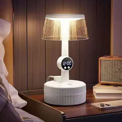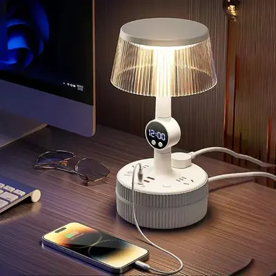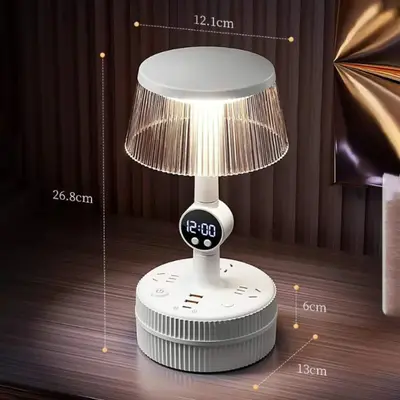 Дан ганц ширээний гэрэл биш, лед цагтай, залгуур оролттой гэрэл. Гэрэл, цаг, уртасгагч гээд олон төрлөөр ашиглах боломжтой. Гэрэл нь 3 төрлөөр \тод цагаан, бүдэг цагаан, дулаан шар\ асдаг. USB, Type-C оролтоор нь утас болон бусад олон төхөөрөмжөө нэгэн зэрэг цэнэглэх боломжтой. Үзэмжтэй, цэвэрхэн минимал загвартай.