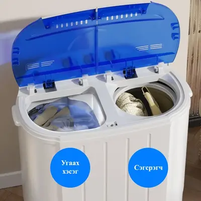 Хүүхдийн хувцас угаах болон ам бүл цөөн айлд хэрэглэхэд тохиромжтой жижиг угаалгын машин. Угаах болон сэгсрэх 2 тусдаа хэсэгтэй.