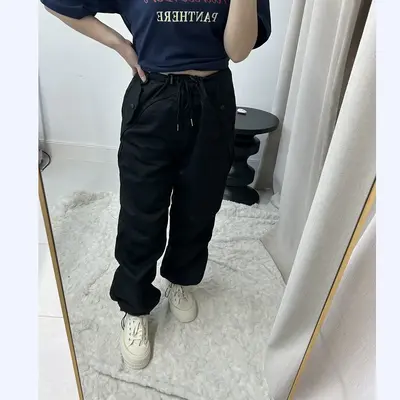 Өргөн сул загвартай, хөдөлгөөнд саад болохгүй, биед эвтэйхэн өмсгөлтэй. Бүс болон шагайн хэсгийг уяагаар чангалж тохируулах боломжтой. Crop top, hoodie, oversize цамц, sneaker-тэй төгс зохицно.