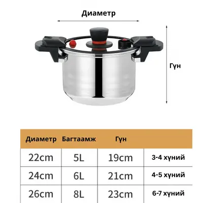 • Хэмжээ: ( 22см - 4л ) , ( 24см - 5л ) ( 26см - 8л ) гэсэн сонголттой