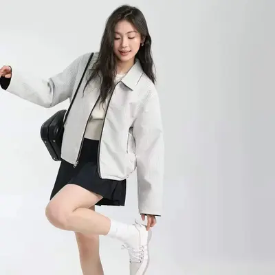 Өдөр тутмын болон ажил хэрэгч загварт тохирох минимал загварын хөнгөн, нимгэн куртик. Энгийн хэрнээ дэгжин хийц нь ямар ч хувцастай амархан зохицно. Урдаа цахилгаантай ба товчтой халаастай. Хөнгөн, биед эвтэйхэн материалтай. Хавар, намар болон зуны орой өмсөхөд тохиромжтой.