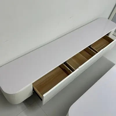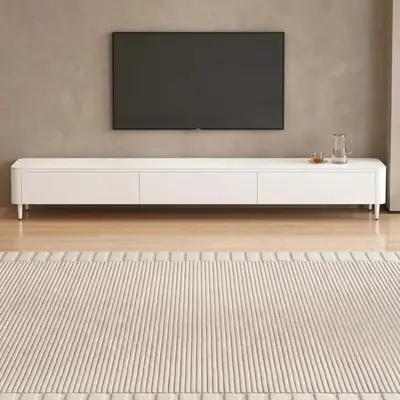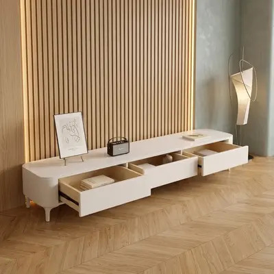 Зочны өрөөний зурагтын тавиур. Тайвшруулж, дулаан мэдрэмж төрүүлэх Cream style ( зөөлөн, цайвар өнгийн загвартай, шилэн тавцантай, арьсан бүрээстэй угсрах шаардлаггүй ). Гэр доторх гоёмсог орчныг бүрдүүлэх ямар ч өнгийн тавилаг, ханатай төгс зохицно.