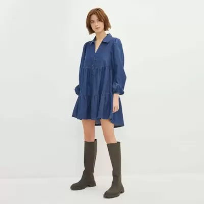 Урт ханцуйтай богино даашинз, Дэрвэгэр хормойтой, Суналттай